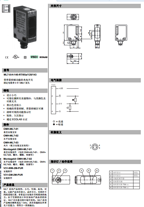ML7-8-H-140-RT/65a/120/143,漫反射型傳感器