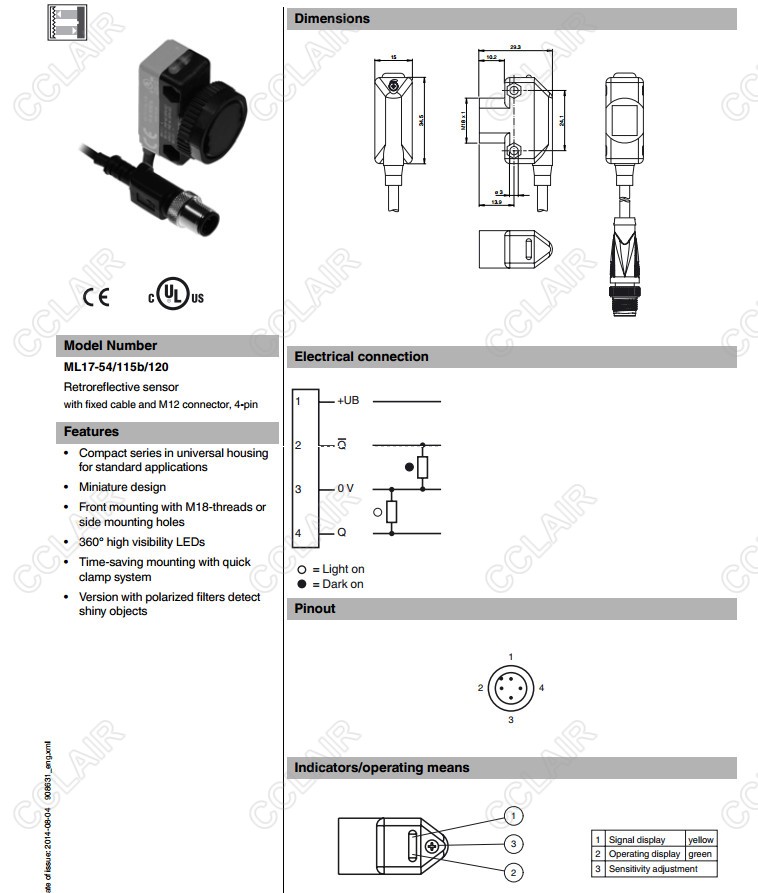ML17-54/115b/120,ML17-54/115b/127,ML17-54/115b/136,反射板型傳感器