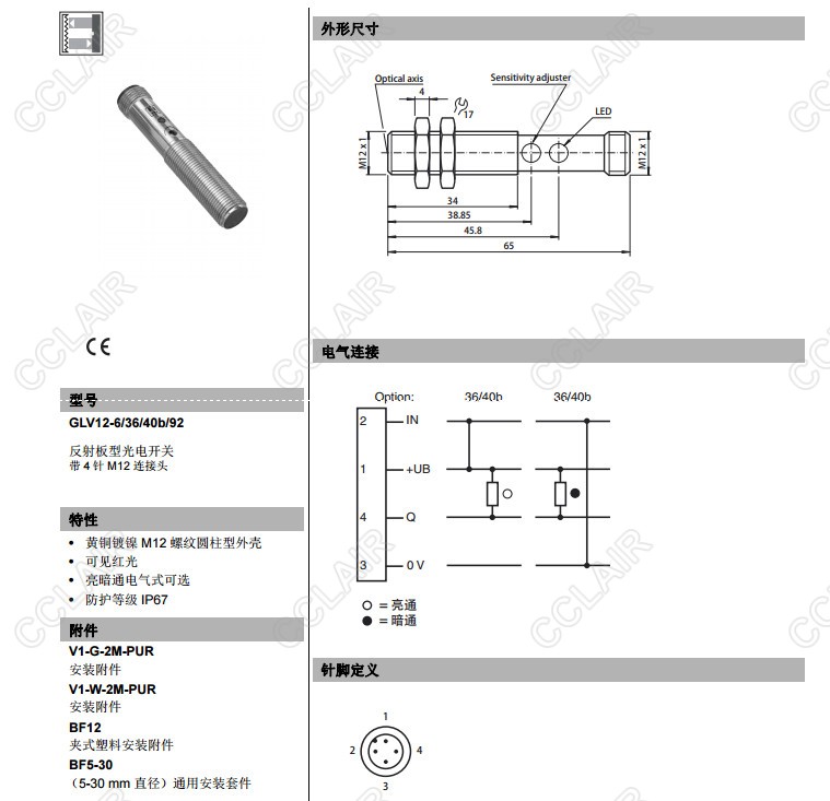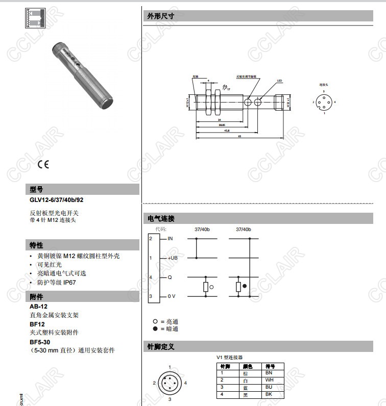 GLV12-6/36/40b/92,GLV12-6/37/40b/92,反射板型傳感器