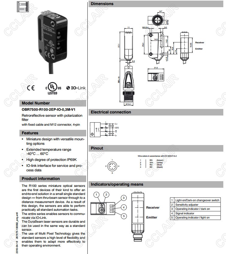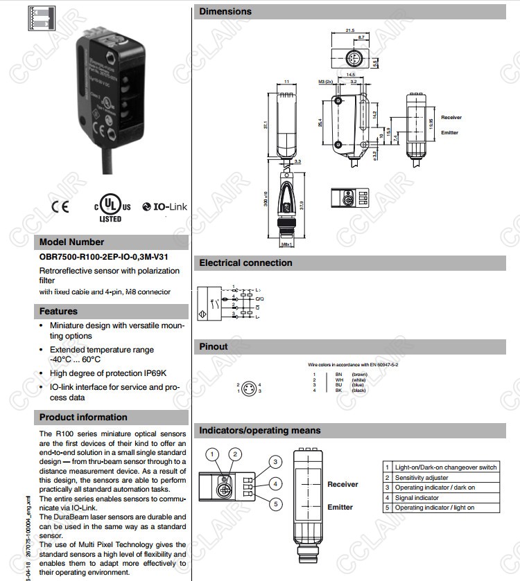 OBR7500-R100-2EP-IO-0,3M-V1,OBR7500-R100-2EP-IO-0,3M-V31,OBR7500-R100-EP-IO-0,3M-V3,反射板型傳感器