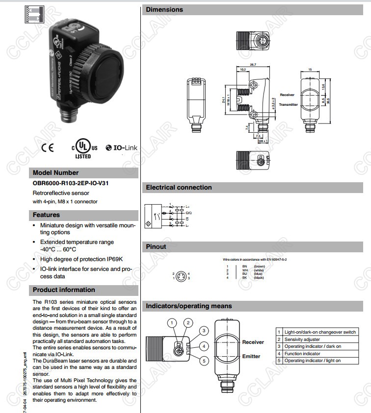 OBR6000-R103-2EP-IO-V31,反射板型光電開(kāi)關(guān)