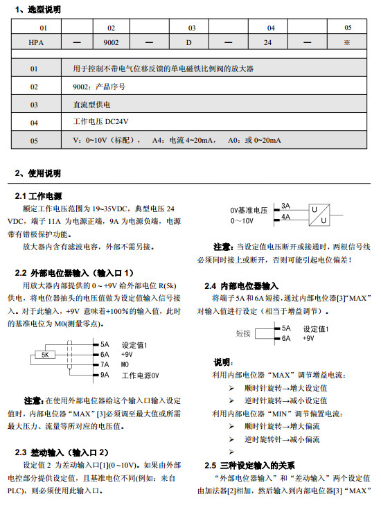 HPA-9002-D-24-V,HPA-9002-D-24-A4,HPA-9002-D-24-A0比例放大器