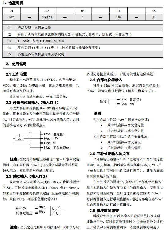 HT-VSPA1-1-16,HT-VSPA1-1-17,HT-VSPA1-1-18,HT-VSPA1-1-19比例放大器
