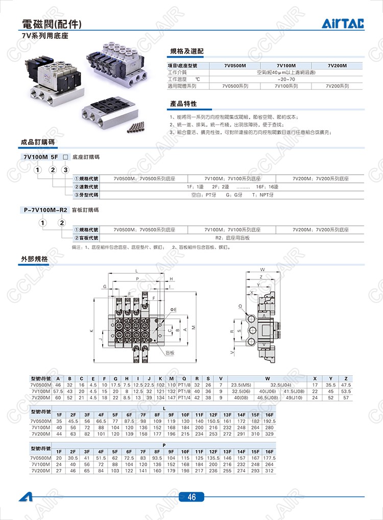 7V0500M-1F,7V0500M-2F,7V0500M-3F,7V0500M-4F,7V0500M-5F,7V0500M-6F,AIRTAC電磁閥底座
