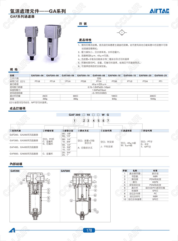 GAF200-06,GAF200-08,GAF300-08,GAF300-10,GAF400-08,GAF400-10,臺(tái)灣AIRTAC過濾器
