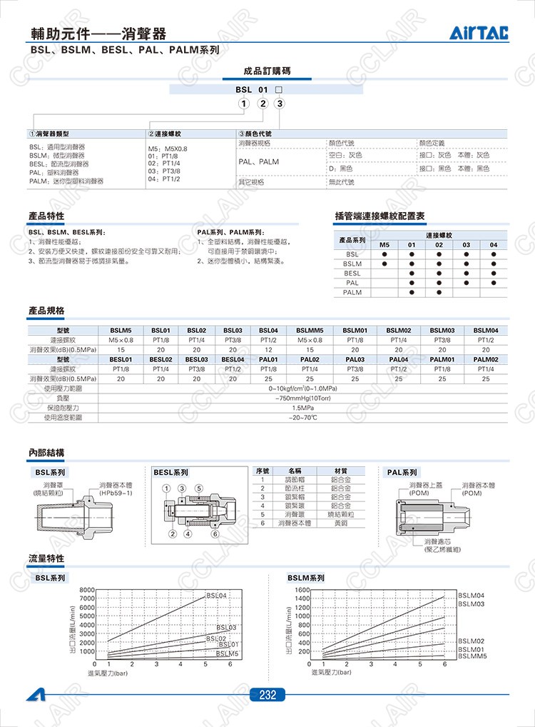 BSLM5,BSL01,BSLMM5,BSLM01,BESL01,BESL02,PAL01,PALM01,臺灣AIRTAC消聲器