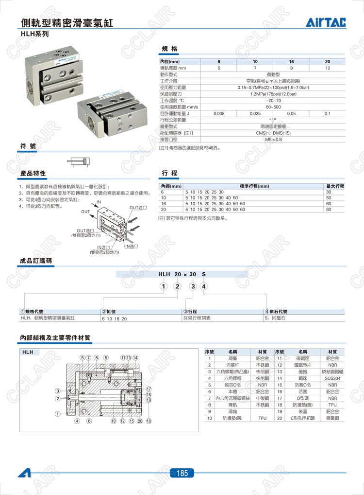 HLH6*5-S,HLH6*10-S,HLH6*15-S,HLH6*20-S,HLH6*25-S,AIRTAC亞德客側(cè)軌型精密滑臺氣缸