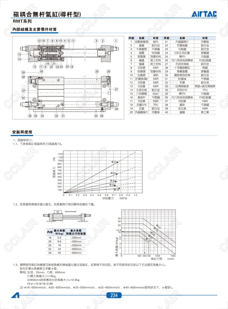 RMT16*50,RMT20*50,RMT25*50,RMT32*50,RMT32*50-S,RMT40*50,RMT40*50-S,亞德客AIRTAC磁耦合無桿氣缸