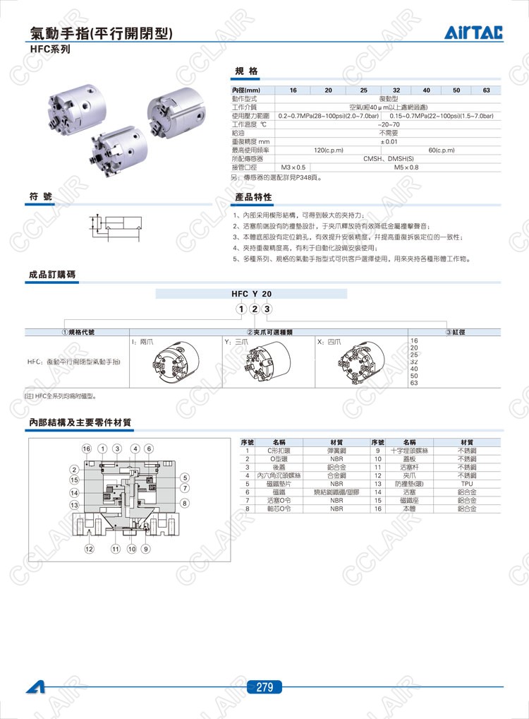 亞德客AIRTAC,HFCI16,HFCI20,HFCY25,HFCY32,HFCX40,HFCX50,氣動手指