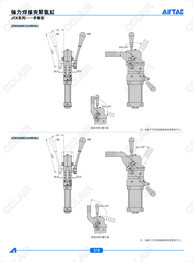 亞德客AIRTAC,JCK40*15AM1R,JCK40*15AM1C,JCKV40*15AM1R,JCKV40*15AM1C,JCKV40*15AM1L,焊接夾緊氣缸-手動型