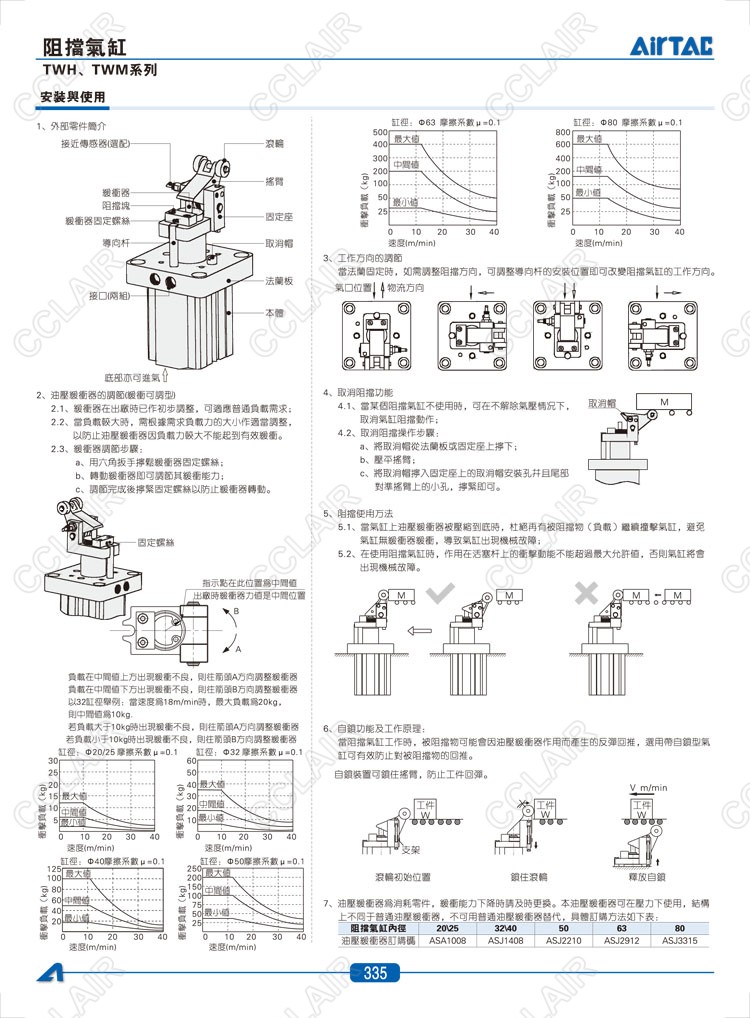 亞德客AIRTAC,TWH20*15-L,TWH20*15-S-L,TWH20*15-K,TWM50*30-K,TWM50*30-S-K,TDM50*30-K,阻擋氣缸