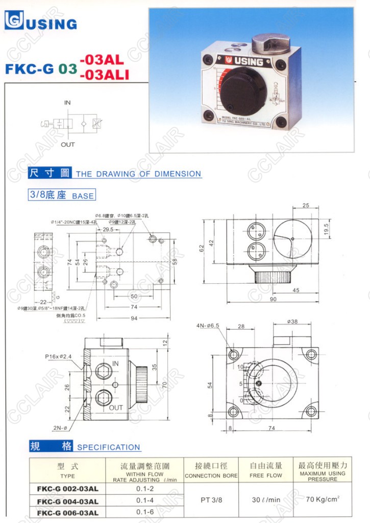 USING峰欣 FKC-G002-03AL,FKC-G004-03AL,FKC-G006-03AL,流量控制閥