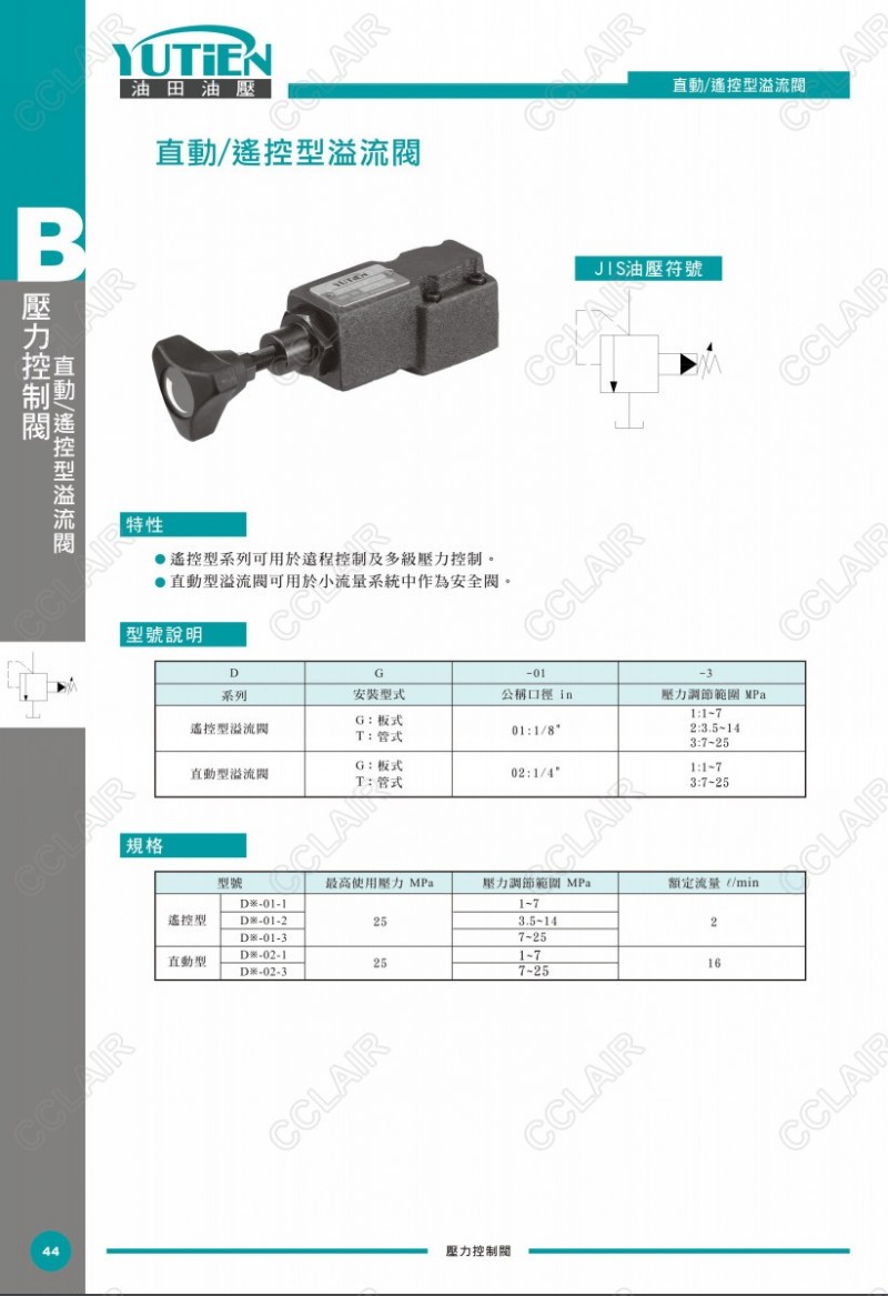 YUTIEN油田直動(dòng)/遙控型溢流閥DG-01-1,DT-01-2,DG-02-1,DT-02-3