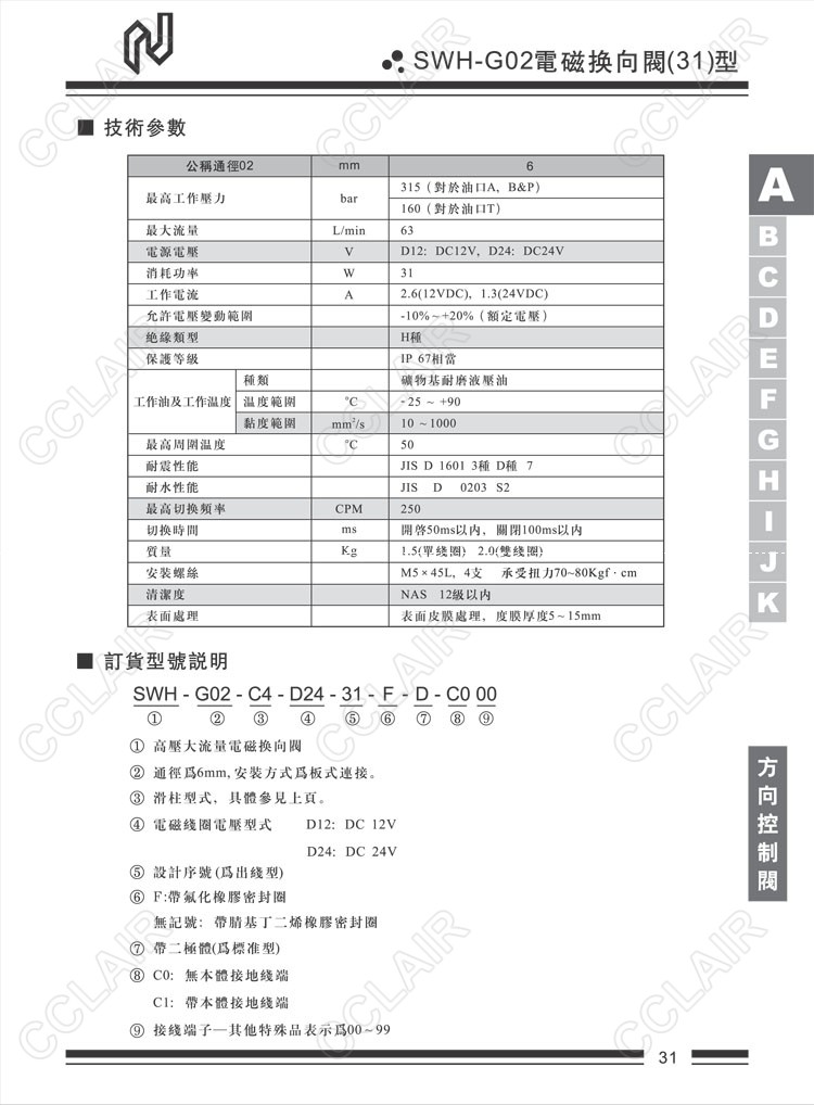 Northman臺灣北部精機(jī),電磁換向閥(31型)SWH-G02-C2-D12-31-F-D-C0,SWH-G02-C3-D12-31-D-C1,SWH-G02-C40-D24-31-D-C1,SWH-G02-C6-D24-31-D-C0,SWH-G02-C8-D12-31-D-C0,SWH-G02-C4B-D24-31-F-D-C1, SWH-G02-C5B-D24-31-F-D-C0,SWH-G02-C60BS-D24-31-D-C0,SWH-G02-C9S-D12-31-D-C1