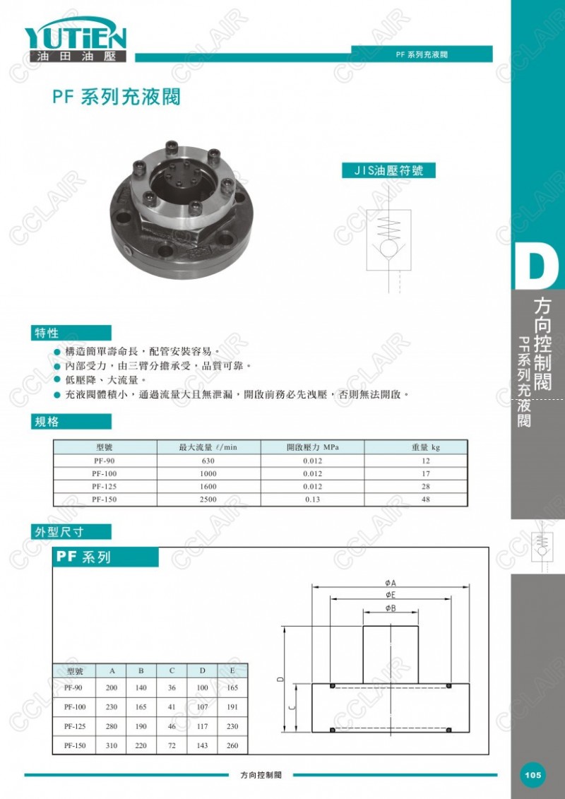 YUTIEN油田充液閥PF-90,PF-100,PF-125,PF-150