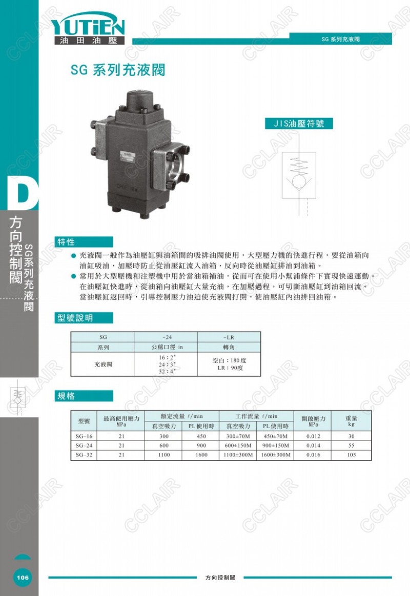 YUTIEN油田充液閥SG-16,SG-16-LR,SG-24,SG-24-LR,SG-32,SG-32-LR