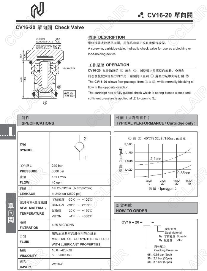 CV16-20-05-N,CV16-20-05-V,CV16-20-30-N,CV16-20-30-V,CV16-20-50-N,CV16-20-50-V,Northman臺灣北部精機,單向閥