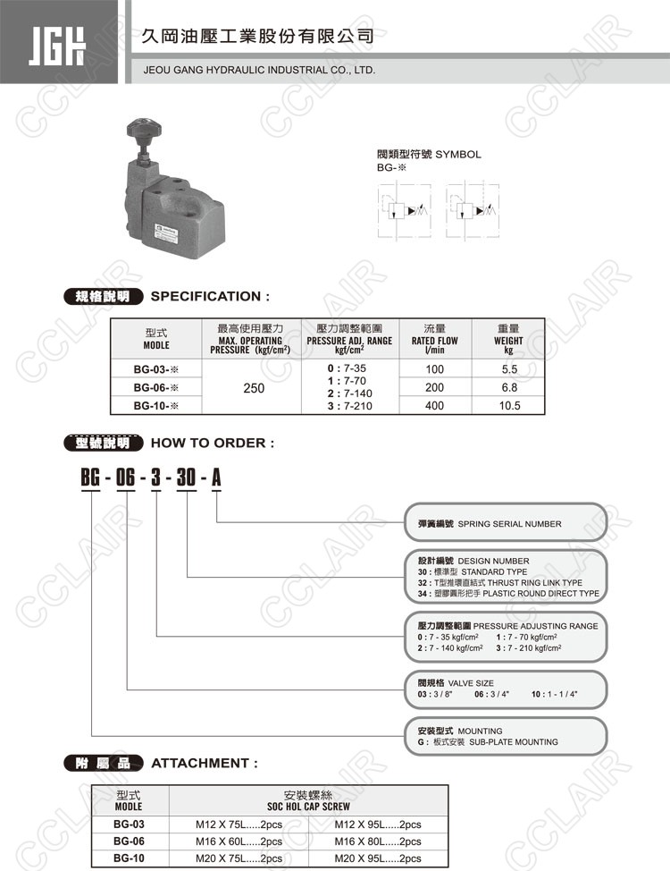 JeouGang臺灣久岡,先導(dǎo)式溢流閥BG-03-0-30-A,BG-03-0-32-A,BG-03-0-34-A,BG-03-3-30-A,BG-03-3-32-A,BG-03-3-34-A,BG-06-0-30-A,BG-06-0-32-ABG-06-3-32-A,BG-06-3-34-A,BG-10-2-30-A,BG-10-2-32-A,BG-10-2-34-A