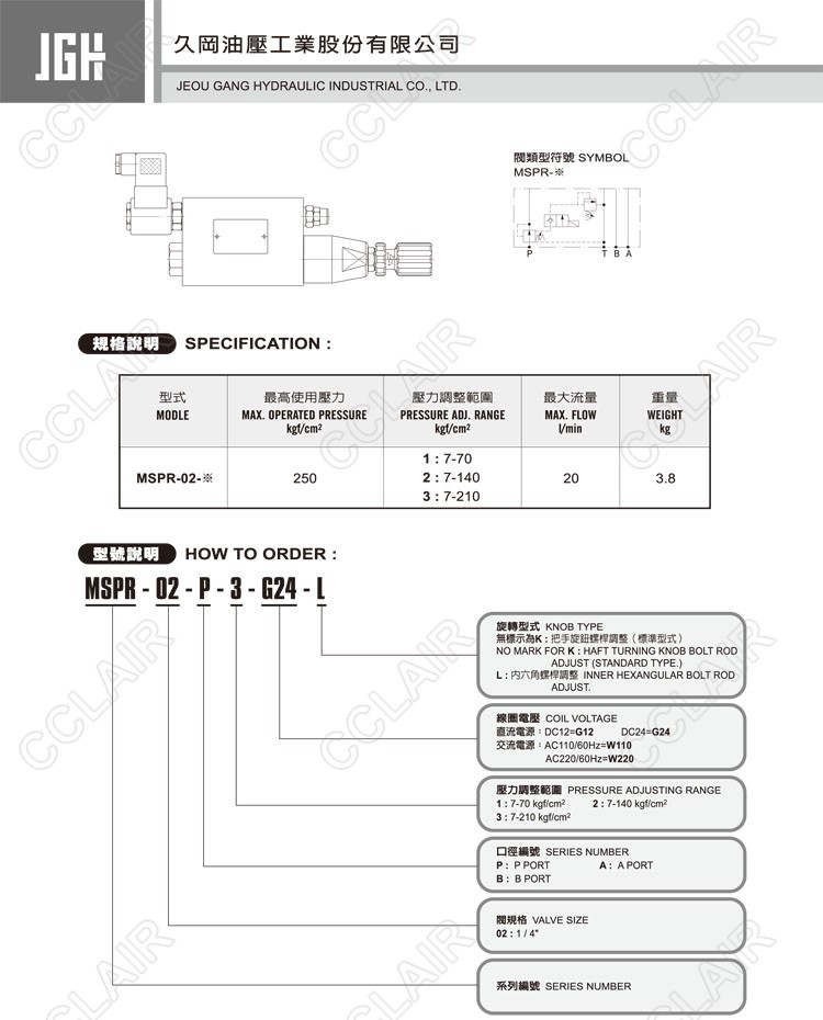JeouGang臺灣久岡,疊加式電控減壓閥MSPR-02-P-1-G12-K,MSPR-02-P-2-G24-L,MSPR-02-P-3-W110-K,MSPR-02-A-1-W220-L,MSPR-02-A-3-G12-K,MSPR-02-B-1-W220-L,MSPR-02-B-3-G12-K,MSPR-02-B-3-G12-L,MSPR-02-B-3-W110-L,MSPR-02-B-3-W220-K,MSPR-02-B-3-W220-L