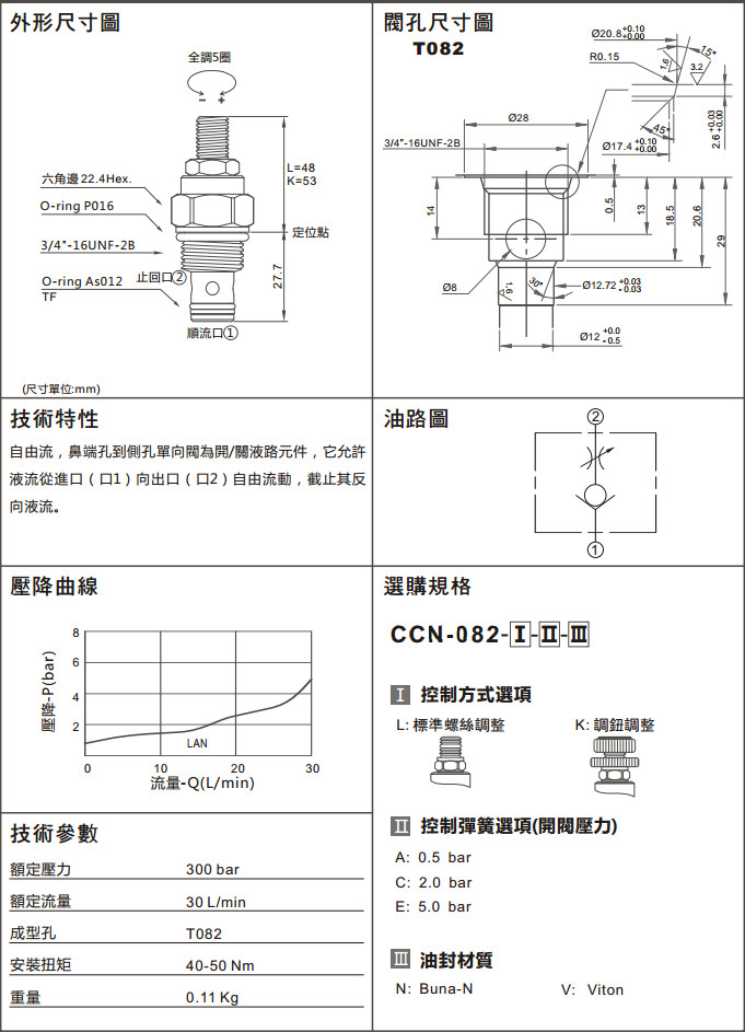 CCN-082-LAN,CCN-082-LCN,CCN-082-LEV,CCN-082-KAN,CCN-082-KEV,CCN-082-LEN,CCN-082-LAV,CCN-082-LCV,CCN-082-KCN, CCN-082-KEN,CCN-082-KAV,CCN-082-KCV,單向閥(口1通口2自由流,附調(diào)整桿)