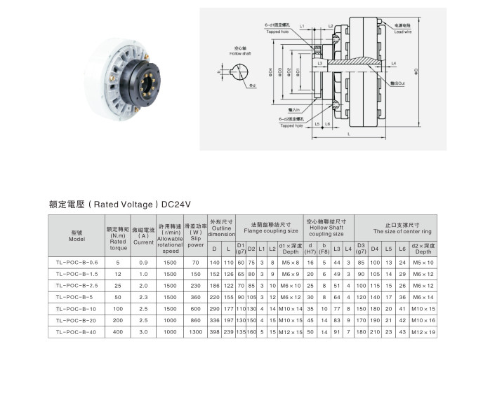 TL-POC-B-0.6,TL-POC-B-1.5,TL-POC-B-2.5,TL-POC-B-5,TL-POC-B-10,TL-POC-B-20,TL-POC-B-40內(nèi)殼旋轉(zhuǎn)中空軸磁粉離合器