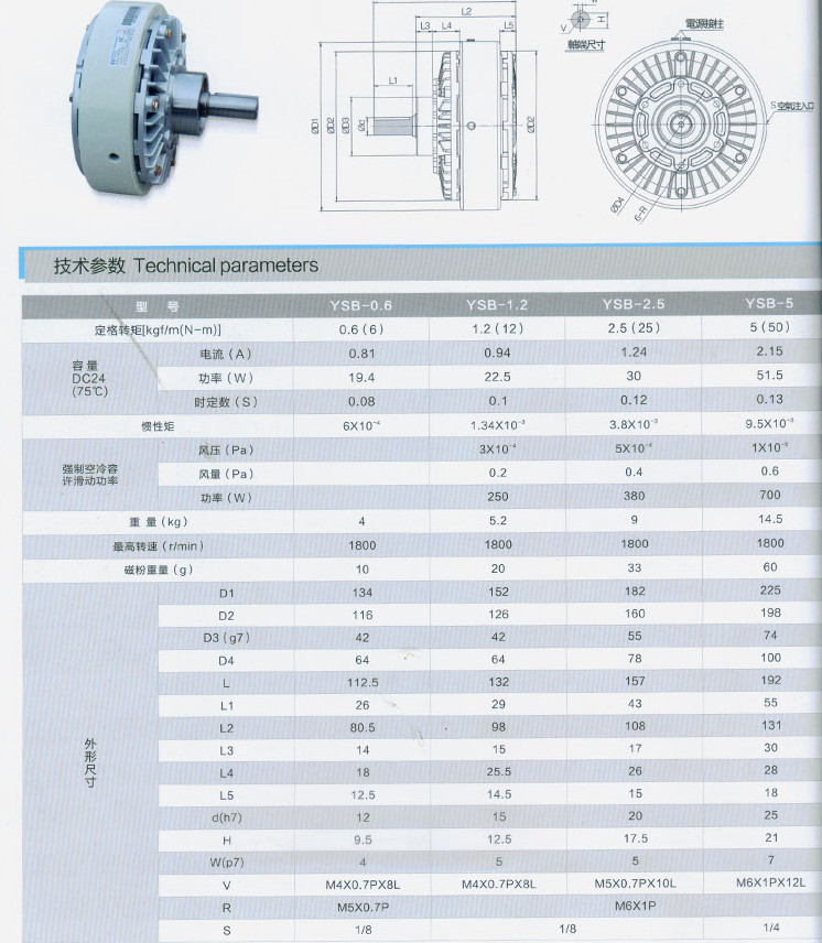 YSB-0.6,YSB-1.2,YSB-2.5,YSB-5,磁粉制動器