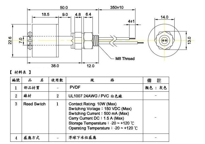 XFL-PVDF38I,進口PVDF頂裝式浮球開關