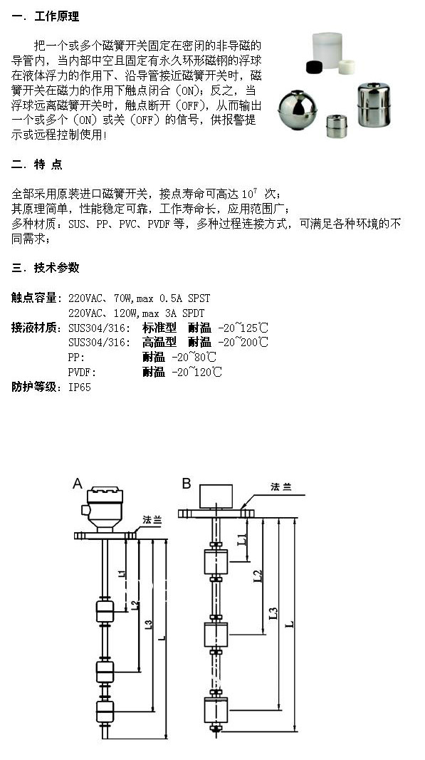 XFL-PP731-D2,超短型雙浮球水位開關(guān)
