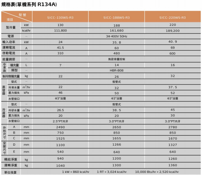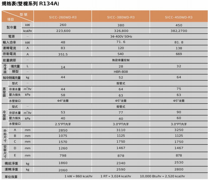 型號: SICC-130WS-R3,SICC-188WS-R3,SICC-220WS-R3,SICC-260WD-R3,SICC-380WD-R3,SICC-450WD-R3