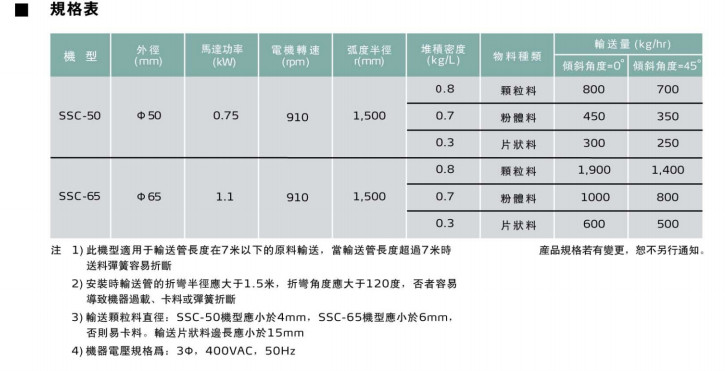SSC-50,SSC-65,柔性螺旋輸送機(jī)