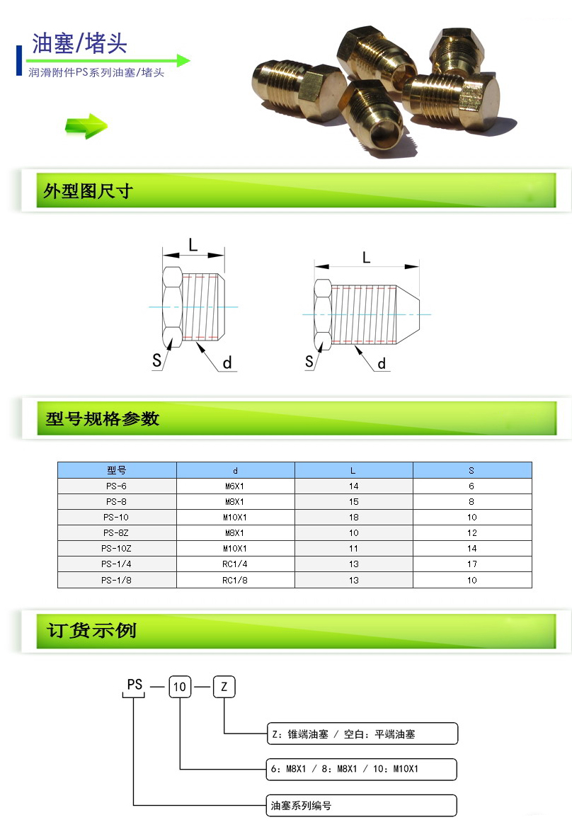 PS-6,PS-8,PS-10,PS-8Z,PS-10Z,PS-1/4,PS-1/8,油塞/堵頭