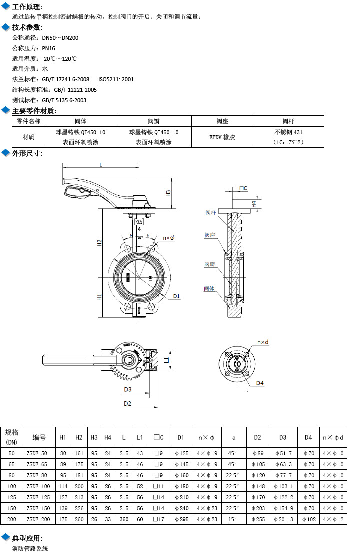 ZSDF-50,ZSDF-65,ZSDF-80,ZSDF-100,ZSDF-125,ZSDF-150,ZSDF-200,手柄式消防對夾中線蝶閥