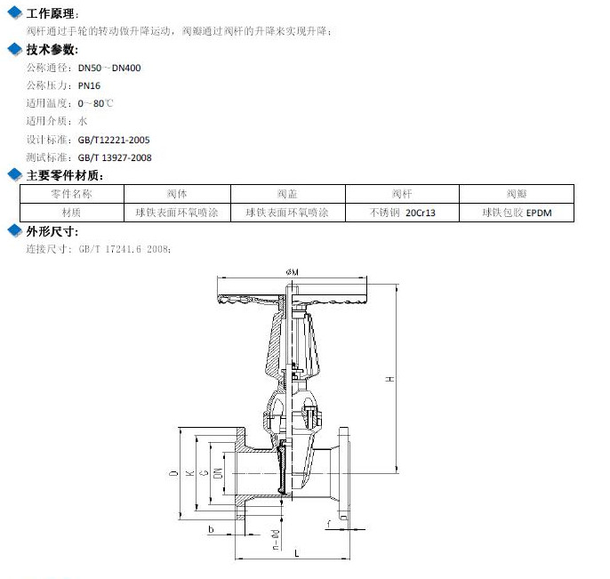 W-Z41X-16Q-DN50,W-Z41X-16Q-DN65,W-Z41X-16Q-DN80,W-Z41X-16Q-DN100,明桿彈性座封閘閥