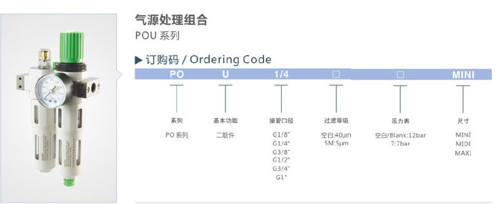POU-1/8,POU-1/4,POU-3/8,POU-3/4,POU-1/2,POU-1,氣源處理組合