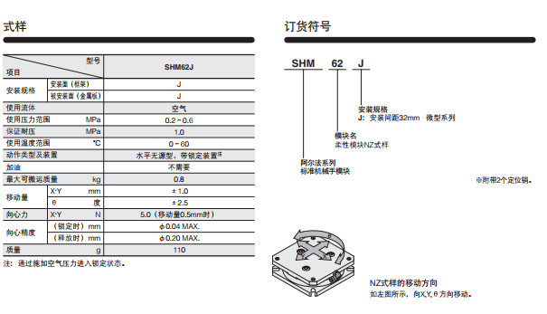 SHM62J,標(biāo)準(zhǔn)機(jī)械手模塊微型系列--柔性模塊NZ式樣