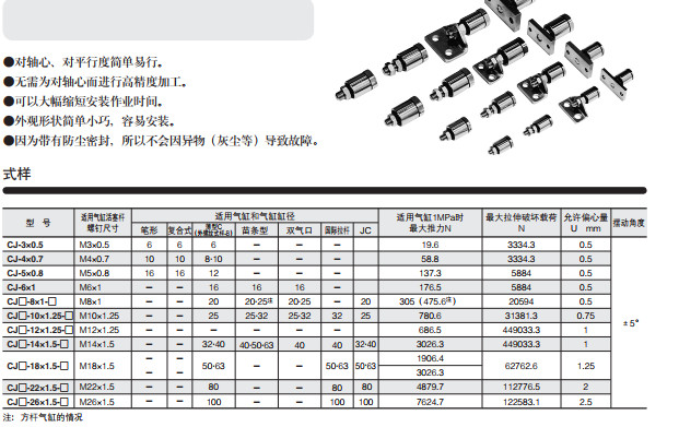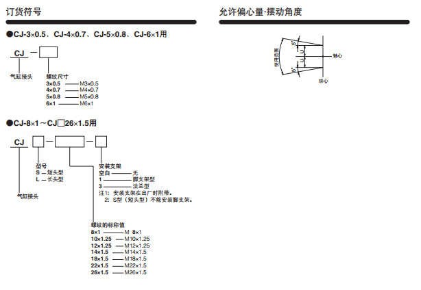 CJ-3*0.5,CJ-4*0.7,CJ-5*0.8,CJ-6*1,CJS-8*1,CJS-10*1.25,CJS-12*1.25,氣缸軸接頭