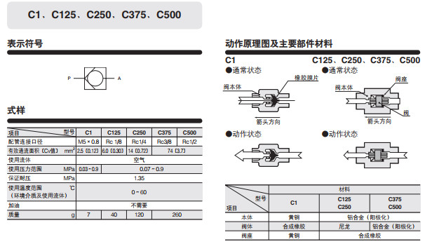 C1,C125,C250,C375,C500,單向閥