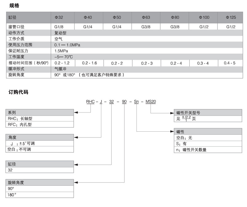 RHCJ32-90,RHCJ32-180,RHCJ40-90,RHCJ40-180,RHCJ50-90,旋轉(zhuǎn)氣缸