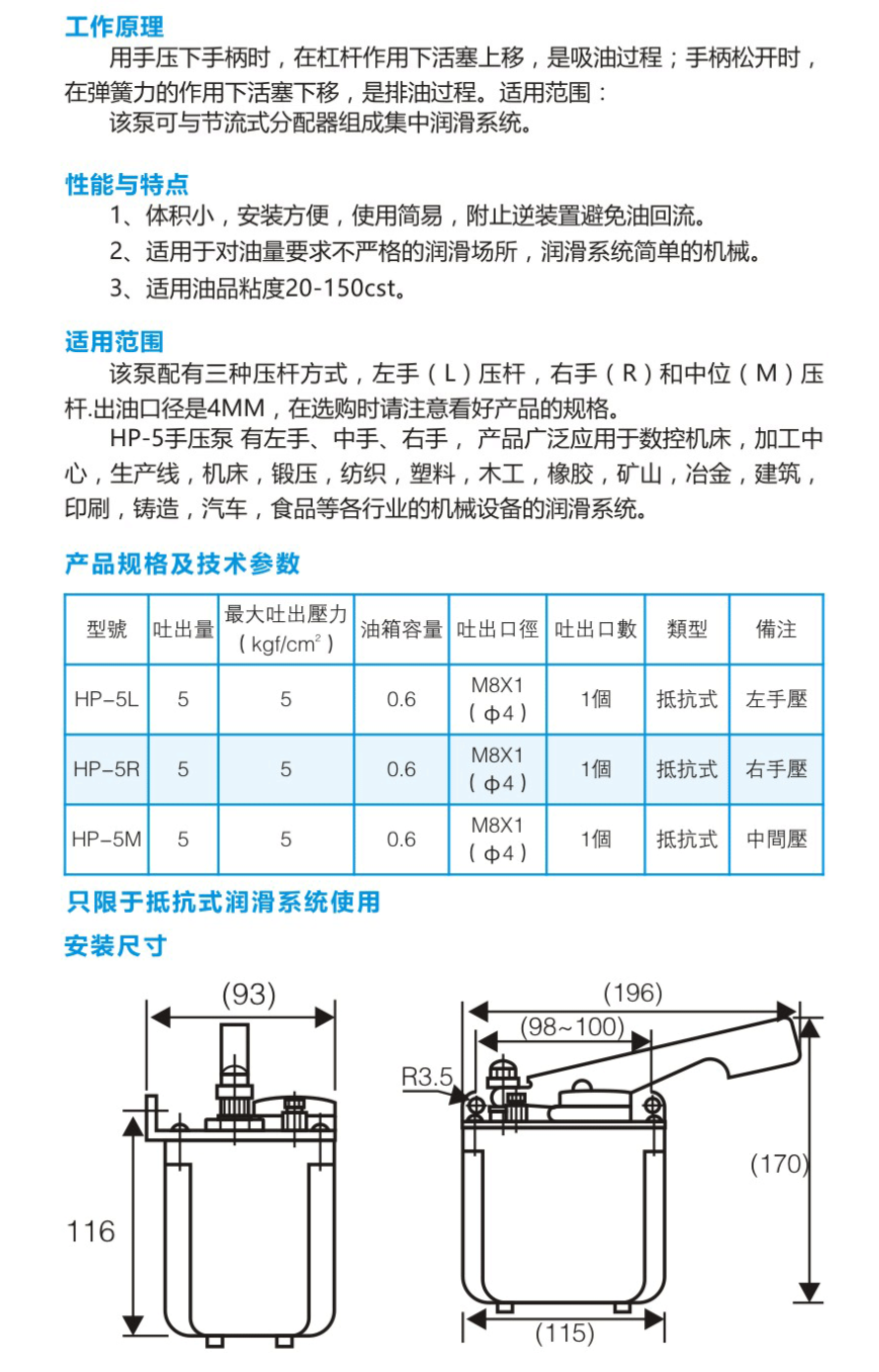 HP-5L,HP-5R,HP-5M,手油泵 手壓式稀油潤滑泵