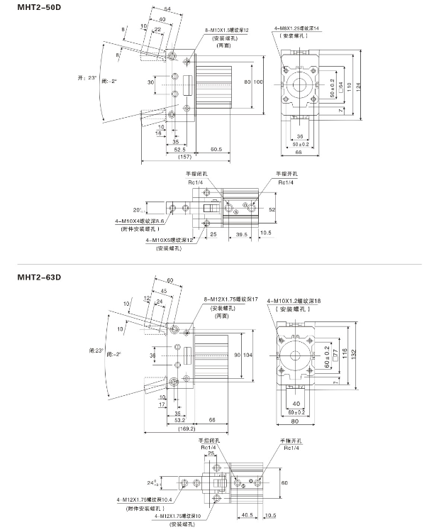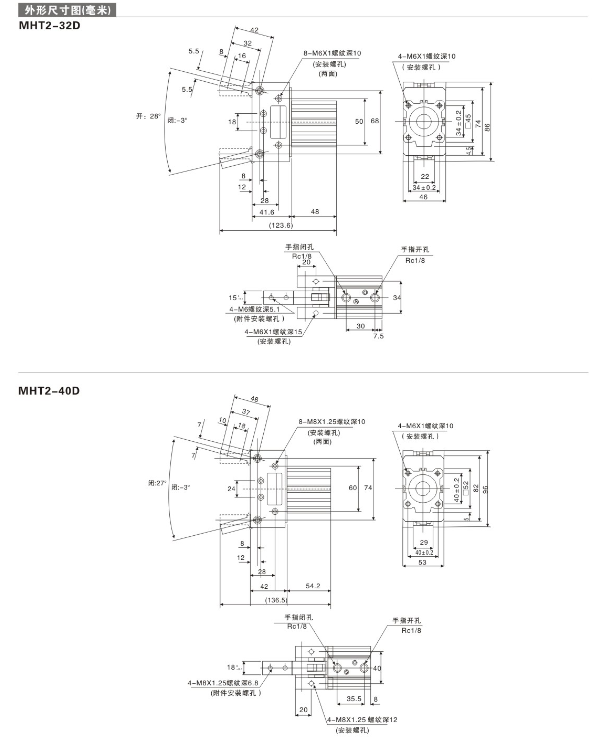 氣動(dòng)手指氣缸 MHT2-32D,MHT2-40D,MHT2-50D,MHT2-63D