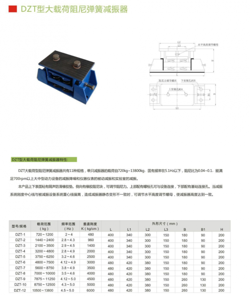 大載荷阻尼彈簧減振器 DZT-1,DZT-2,DZT-3,DZT-4,DZT-5,DZT-6,DZT-7,DZT-8,DZT-9,DZT-10,DZT-12