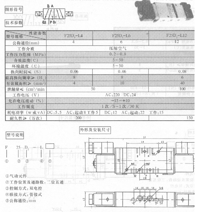 二位五通雙電控滑閥F25D2-L4,F25D2-L6,F25D2-L12