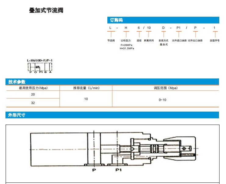 L-H6/10D-P1/P-1,L-F6/10D-P1/P-1,疊加式節(jié)流閥