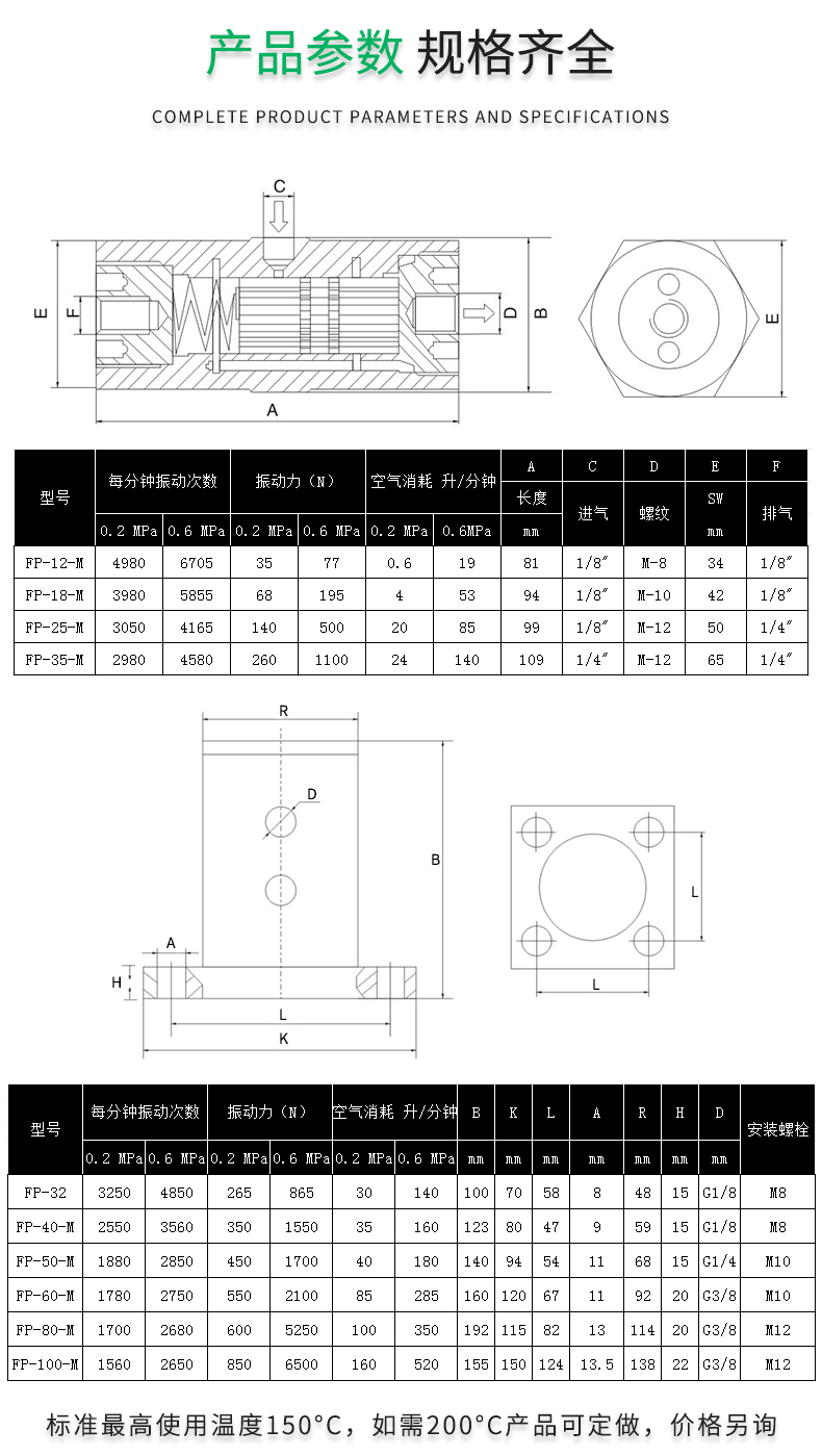 活塞往復(fù)震蕩器FP-12-M,FP-18-M,FP-25-M,FP-32,FP-35-M,FP-40-M,FP-50-M,FP-60-M,FP-80-M,FP-100-M,氣動(dòng)振動(dòng)器