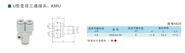 SMC型U型變徑三通接頭KMU23-04,KMU03-04,KMU04-06,