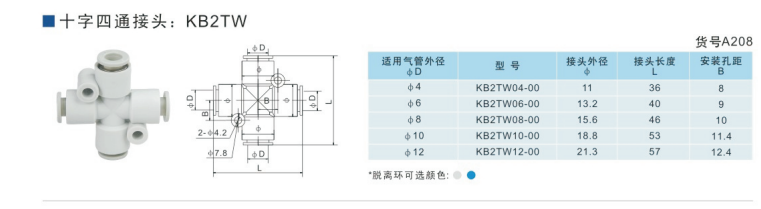 SMC型十字四通接頭KB2TW04-00,KB2TW06-00,KB2TW08-00,KB2TW10-00,KB2TW12-00,