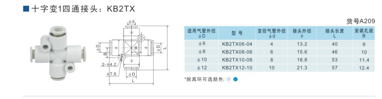 SMC型十字變1四通接頭KB2TX06-04,KB2TX08-06,KB2TX10-08,KB2TX12-10,