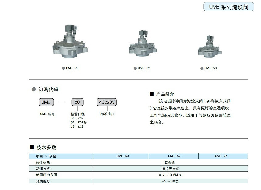 高原型淹沒式脈沖閥UME-50,UME-62,UME-76,