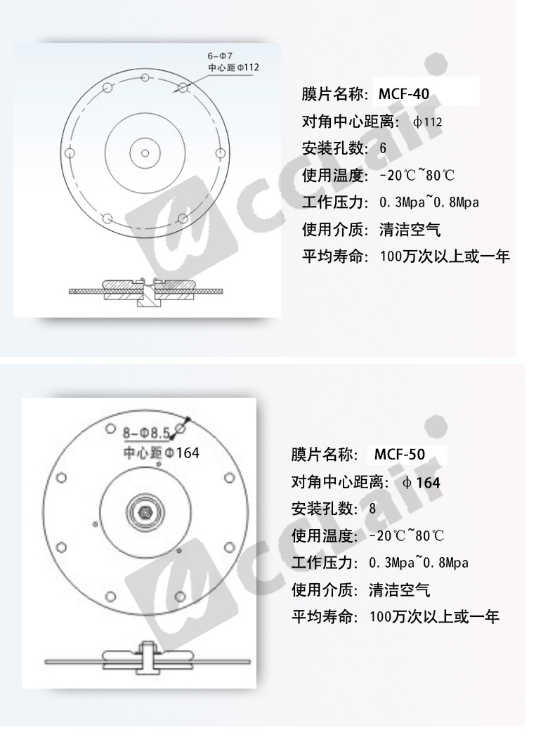 MCF-25 膜片,MCF-35 膜片,MCF-40 大膜片,脈沖閥附件