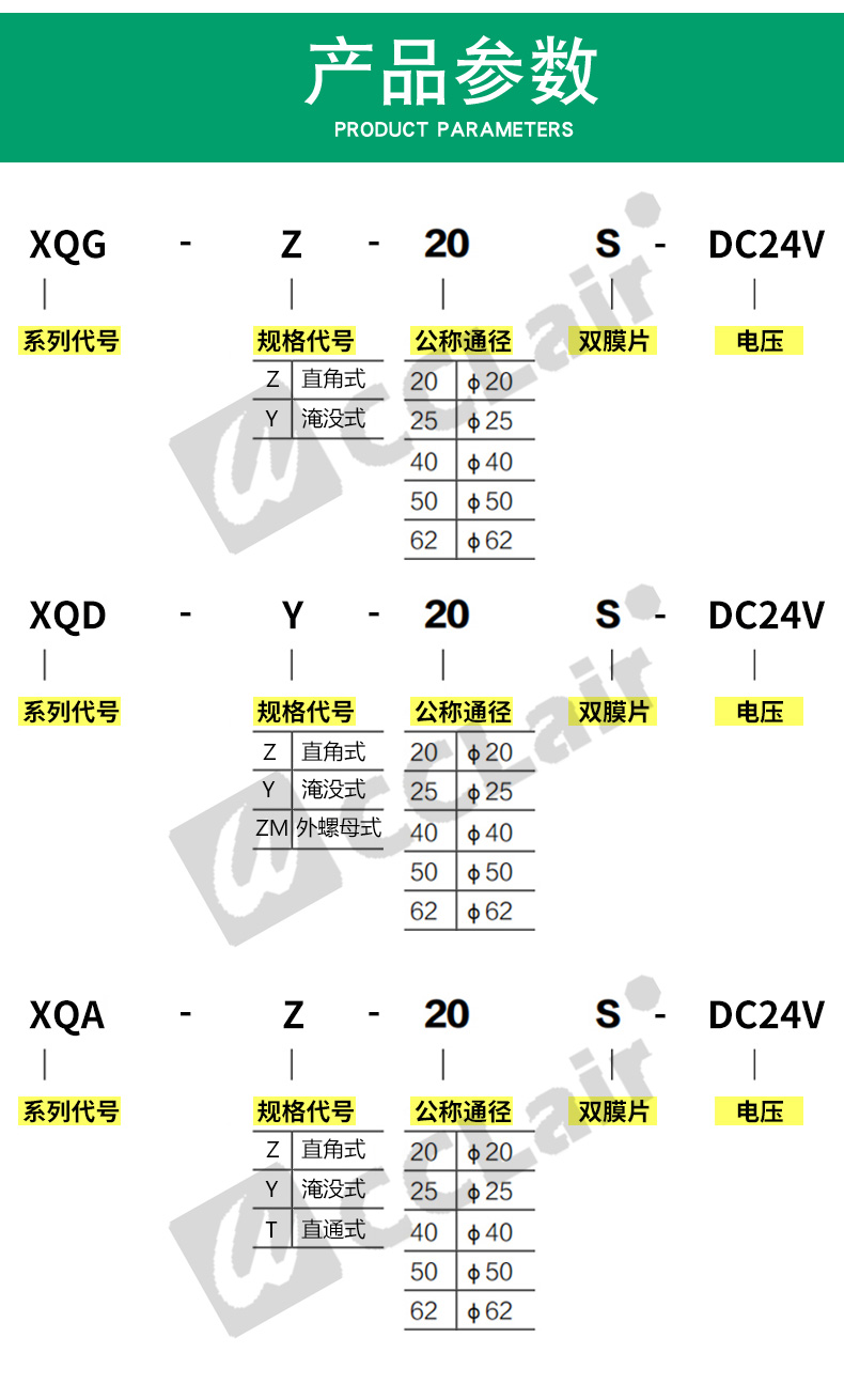 XQA-Z-20,XQA-Z-40S,XQA-Z-20J,XQA-Z-50S,XQA-Z-25,XQA-Z-62S,XQA-Z-25J,XQA-Y-76S,直角式脈沖閥